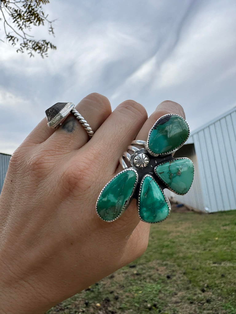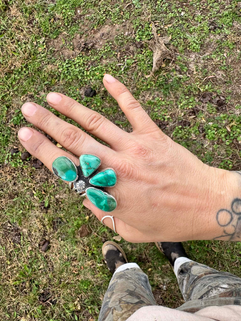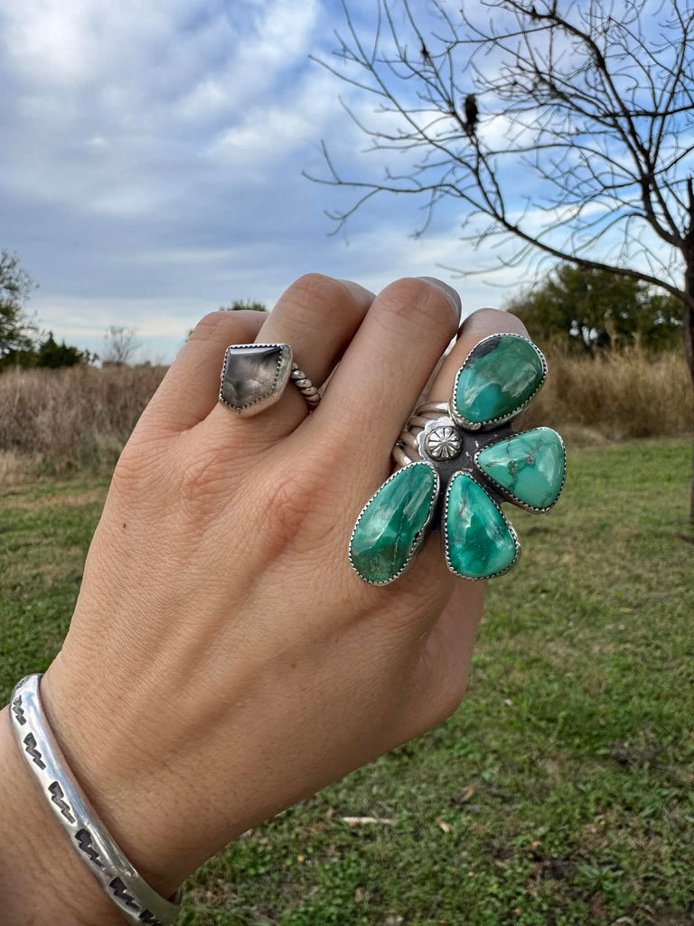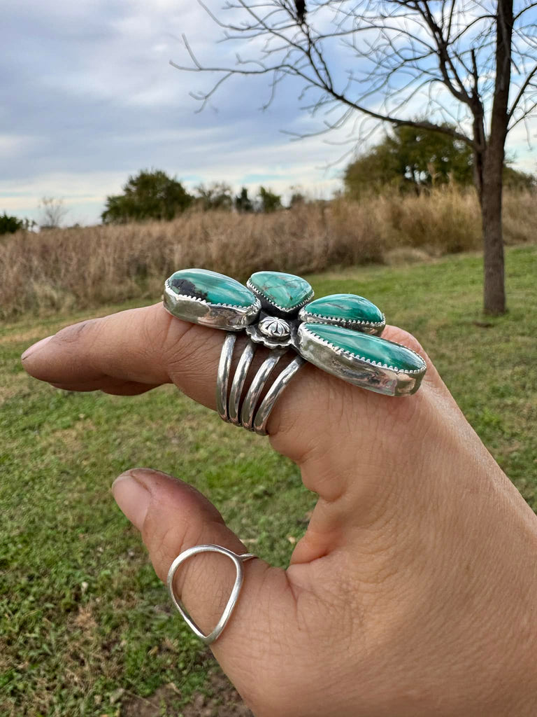 Hubei Turquoise, Quad Band, Sterling Silver.